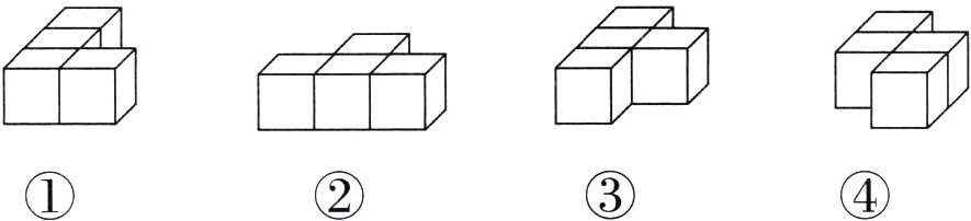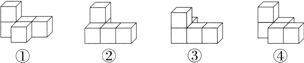 由5个正方体搭成的立体图形,从前面和左面看到的形状如右图。你知道这个立体图形可能是什么形状吗?想一想,下列几种摆法中,不正确的是( )。