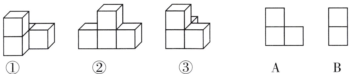 (2) 上面3个物体中,从左面看是图B的有( )。