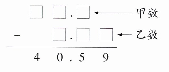 甲、乙两数的差是40.59,把甲数的小数点向左移动一位就等于乙数。甲、乙两数各是多少?(提示:可以试着填写右面的竖式)