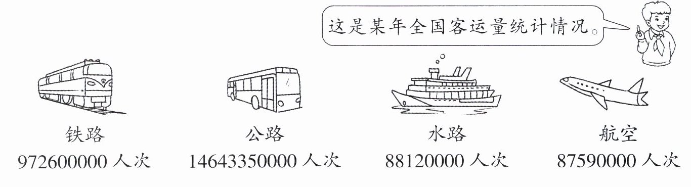 2. 把4种不同交通工具的客运量按从大到小的顺序排列。想一想,为了方便排列,我们该怎样做?先制订一个方案,再按方案做。