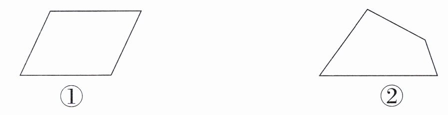 (1) 量一量,算一算。量出下面各个四边形中四个内角的度数,标在图上,并分别算出它们的内角和。