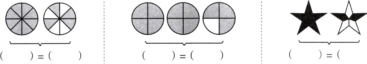 5. 用假分数和带分数分别表示图中的涂色部分。(每个图形看作单位“1”)