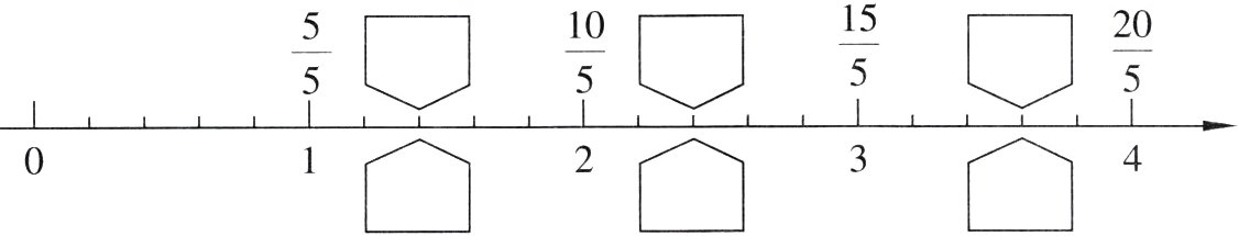 4. 在直线的上面填适当的假分数,在直线的下面填适当的带分数。