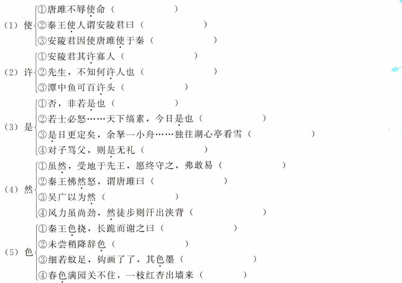 (2)①答应,允许 ②处所,地方 ③表示约数