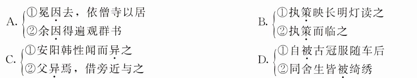 2. 下面各组语句中加点词的意思(用法)不相同的一项是( )。