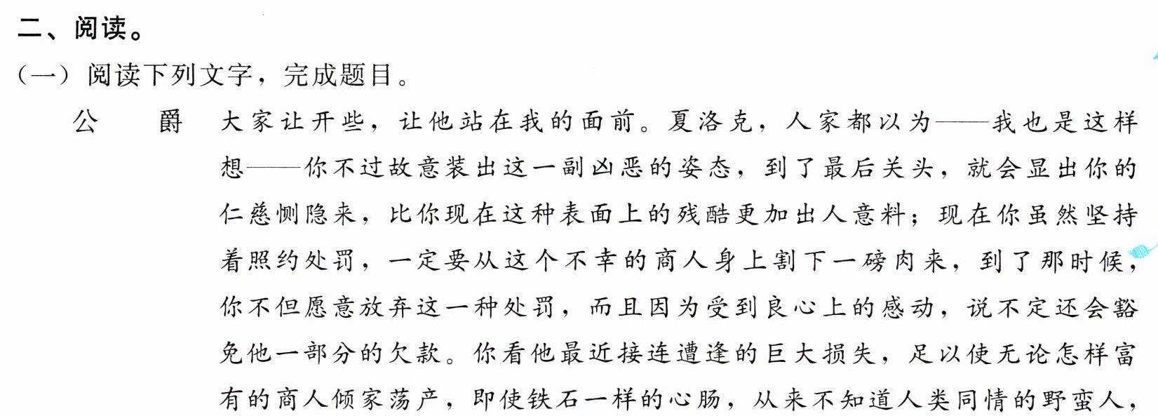 8. 比喻,形象生动地写出夏洛克的冷酷无情,他是不会改变其残忍之心的。