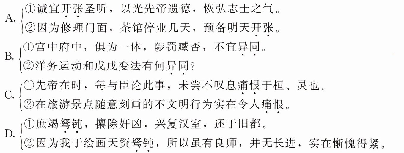 2. 下面各组句子中加点词的意思相同的一项是( )。