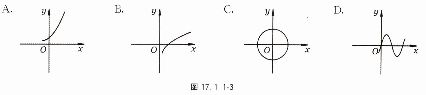 7. 下列曲线中,不能表示$y$是$x$的函数的是图17.1.1 - 3中的( )