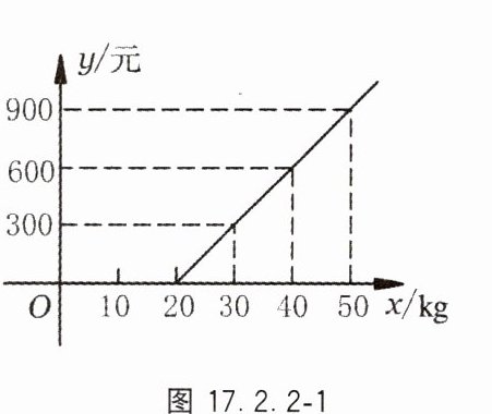 4. 图 17.2.2 - 1 表示某航空公司托运行李的费用 y(元)与托运行李的质量 x(kg)的函数关系,由图中可知行李的质量只要不超过______kg,就可以免费托运.