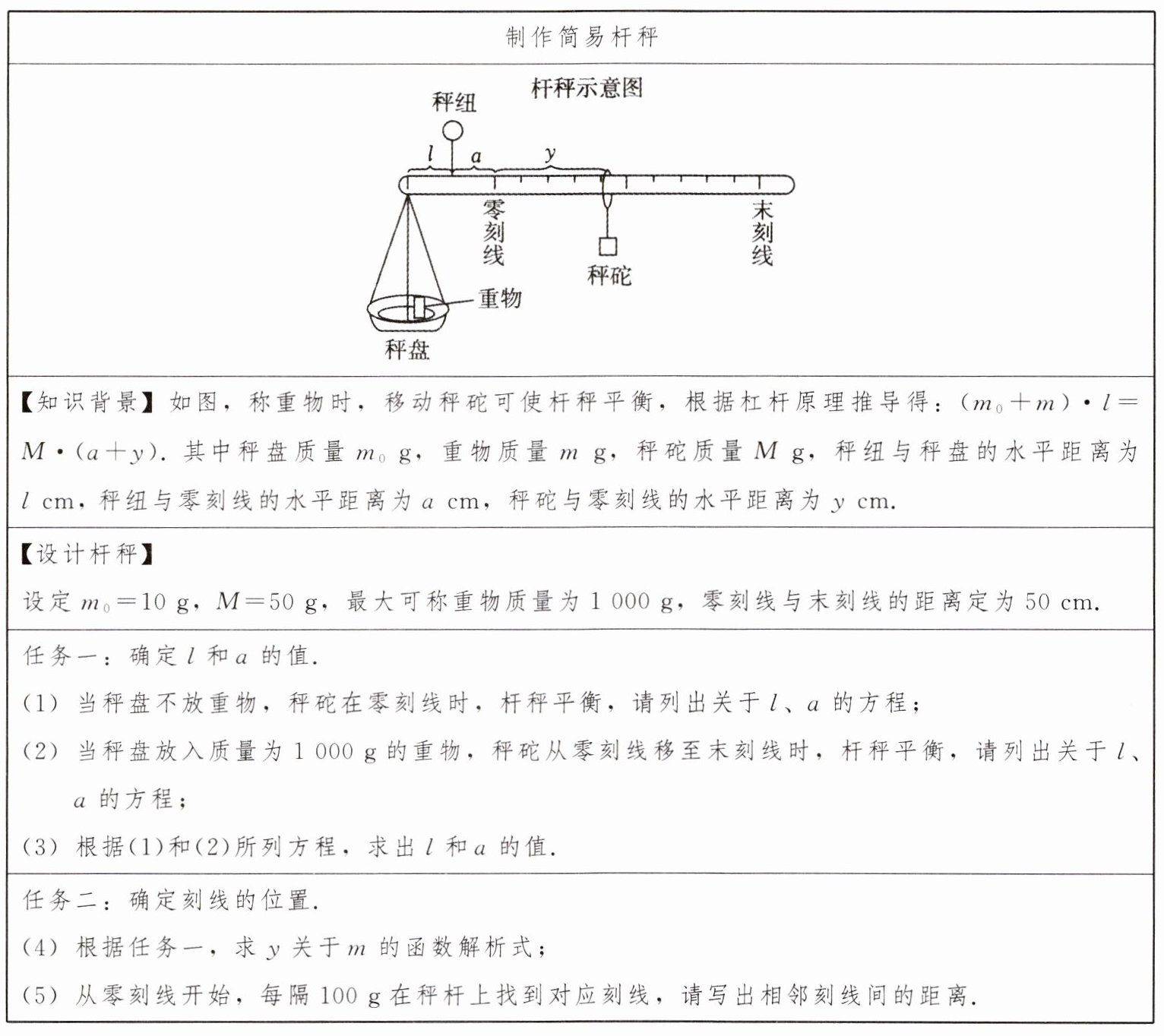 $l = 5a$@@$101l-5a = 250$@@$l = 2.5$, $a = 0.5$@@$y=\frac{1}{20}m$@@5 cm