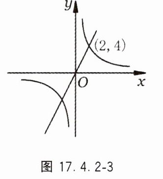 4. 如图17.4.2 - 3,直线$y = 2x$与反比例函数$y = \frac{k}{x}$的图象的一个交点坐标为(2,4),则它们的另一个交点坐标为____________.