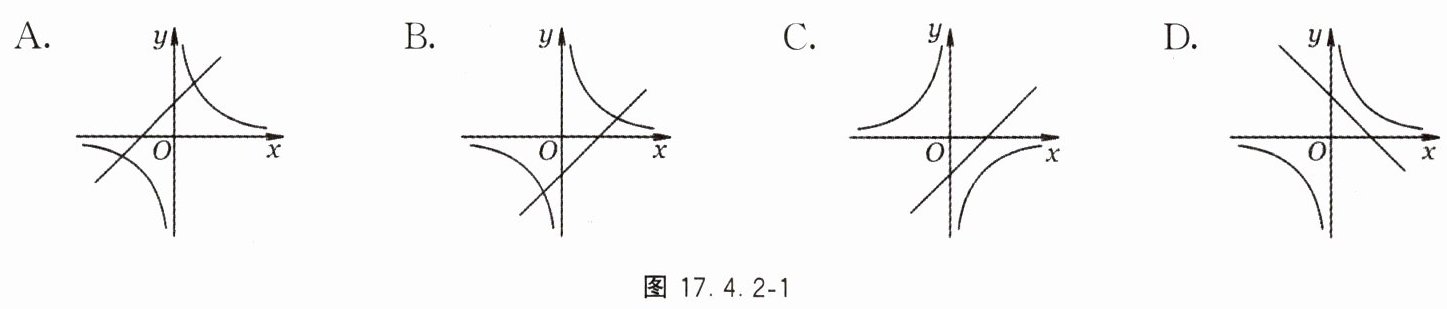 2. 在同一平面直角坐标系中,函数$y = \frac{k}{x}$和$y = kx - 2$的图象大致是图17.4.2 - 1中的( ).