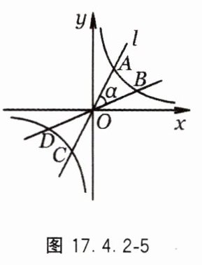 8. 如图17.4.2 - 5,直线$l$与双曲线交于$A$、$C$两点,将直线$l$绕点$O$顺时针旋转的角度为$\alpha$($0^{\circ}<\alpha\leqslant45^{\circ}$),与双曲线交于$B$、$D$两点,则以$A$、$B$、$C$、$D$为顶点的四边形的形状一定是( ).
