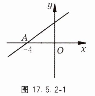 1. 如图 17.5.2 - 1,直线$y = kx + b$与$x$轴交于点$A( - 4,0)$,则当$y>0$时,自变量$x$的取值范围是( ).