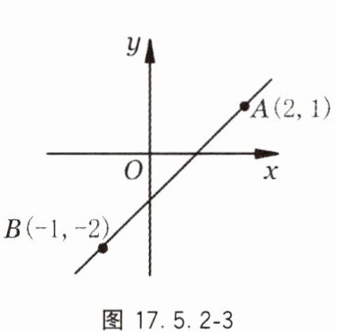 3. 如图 17.5.2 - 3,直线$y = kx + b$经过$A(2,1)$、$B( - 1, - 2)$两点,则不等式$-2\leqslant kx + b\leqslant1$的解集为____________.