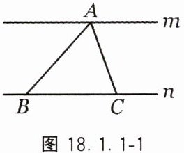 2. 如图18.1.1-1,直线m//n,点B、C是直线n上的两个定点,点A是直线m上的一个动点,则在点A移动的过程中,△ABC的面积将( ).