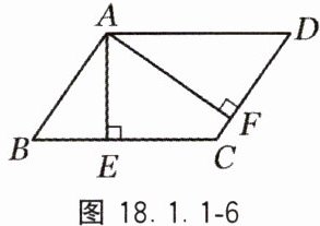 8. 如图18.1.1-6,在□ABCD中,AE⊥BC于点E,AF⊥CD于点F,∠EAF=60°,求□ABCD各内角的大小.=