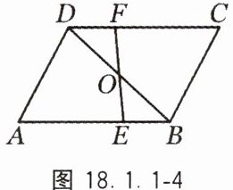 6. 如图18.1.1-4,在□ABCD中,O为BD的中点,EF过点O且分别交AB、CD于点E、F. 若AE=10,则CF的长为______.