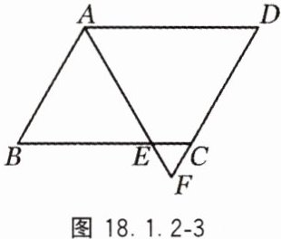 6. 如图18.1.2-3,点E是□ABCD边BC上一点,且AB=BE,连结AE并延长AE与DC的延长线交于点F,∠F=60°,求∠B和∠BCD的大小.