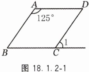 2. 如图18.1.2-1,若在□ABCD中,∠A=125°,则∠1的大小为( ).