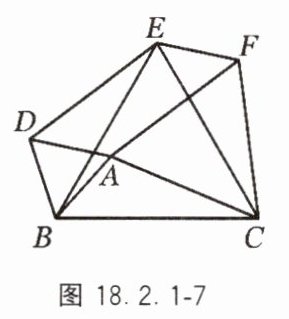 8. 如图18.2.1-7,在△ABC中,∠BAC≠60°,以△ABC的三边AB、BC、CA分别为边,在BC的同侧作三个等边三角形,即△ABD、△BCE、△CAF,求证:四边形ADEF是平行四边形.