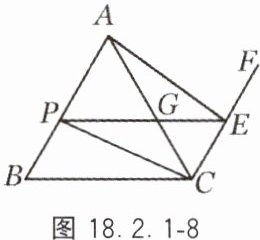 9. 如图18.2.1-8,已知△ABC是等边三角形,CF//AB,点P为线段AB上任意一点(点P不与点A、B重合),过点P作PE//BC,分别交AC、CF于点G、E.