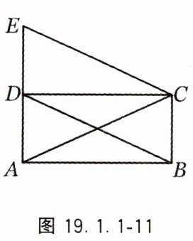 6. 如图 19.1.1-11,四边形 ABCD 是矩形,点 E 在 AD 的延长线上,且 CE//BD,求证:AC = CE.
