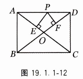 7. 如图 19.1.1-12,在矩形 ABCD 中,AB = 3,AD = 4,点 P 在边 AD 上,PE⊥AC 交 AC 于点 E,PF⊥BD 交 BD 于点 F,则 PE + PF 等于( ).