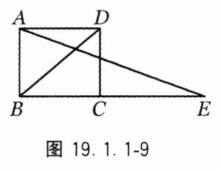 4. 如图 19.1.1-9,延长矩形 ABCD 的边 BC 至点 E,使 CE = BD,连结 AE,若∠ADB = 40°,则∠E 的大小是______.