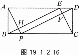 10. 如图19.1.2-16,在矩形ABCD中,AB = 2,BC = 5,点E、P分别在AD、BC上,且DE = BP = 1.