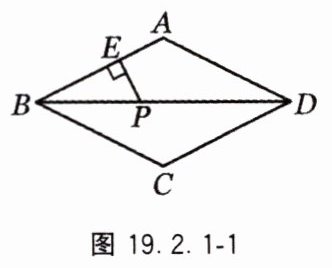 3. 如图19.2.1-1,P是菱形ABCD对角线BD上一点,若PE⊥AB于点E,PE=5 cm,则点P到BC的距离是____cm.