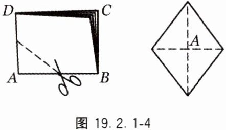 6. 如图19.2.1-4,将一个长为10 cm、宽为8 cm的矩形纸片对折两次后,沿所得矩形两邻边中点的连线(虚线)剪下,再打开得到一个菱形,则这个菱形的面积为_____cm².