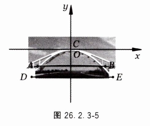 2. 图 26.2.3 - 5 是某地一座抛物线形拱桥,拱桥在竖直平面内与水平桥面相交于$A$、$B$两点,拱桥的最高点$C$到$AB$的距离为$9\ m$,$AB = 36\ m$,以点$C$为原点建立平面直角坐标系.