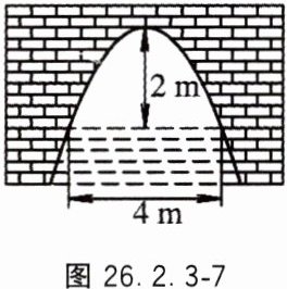 4. 图 26.2.3 - 7 是抛物线形拱桥,当拱顶离水面$2\ m$时,水面宽$4\ m$.