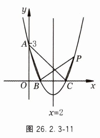 6. 如图 26.2.3 - 11,已知二次函数$y = x^{2}+bx + c$的图象经过点$A(0,3)$,与$x$轴交于点$B$、$C$,且对称轴是直线$x = 2$.