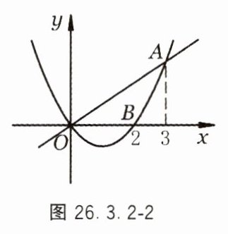 3. 如图 26.3.2-2,已知二次函数 $y_{1}=\frac{2}{3}x^{2}-\frac{4}{3}x$ 的图象与正比例函数 $y_{2}=\frac{2}{3}x$ 的图象交于点 $A(3,2)$,与 $x$ 轴交于点 $B(2,0)$,若 $y_{1}<y_{2}$,则 $x$ 的取值范围是( ).