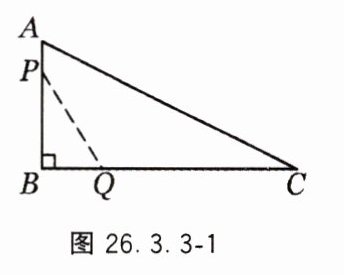 3. 如图 26.3.3-1,在 $\triangle ABC$ 中,$\angle B = 90^{\circ}$,$AB = 6\ \text{cm}$,$BC = 12\ \text{cm}$,动点 $P$ 从点 $A$ 开始沿边 $AB$ 向 $B$ 以 $1\ \text{cm/s}$ 的速度移动(不与点 $B$ 重合),动点 $Q$ 从点 $B$ 开始沿边 $BC$ 向 $C$ 以 $2\ \text{cm/s}$ 的速度移动(不与点 $C$ 重合),点 $P$、$Q$ 分别从点 $A$、$B$ 同时出发. 若要使四边形 $APQC$ 的面积最小,则点 $P$ 的移动时间为( ).