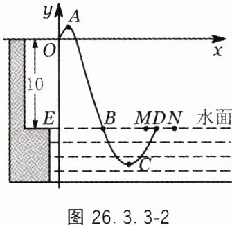 【研究步骤】如图 26.3.3-2,某跳水运动员在 $10\ \text{m}$ 跳台上进行跳水训练,水面与 $y$ 轴交于点 $E(0,-10)$,运动员(将运动员看成一点)在空中运动的路线是经过原点 $O$ 的抛物线,在跳某个规定动作时,运动员在空中最高处点 $A$ 的坐标为 $(\frac{3}{4},\frac{9}{16})$.