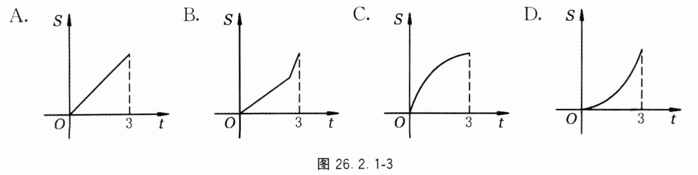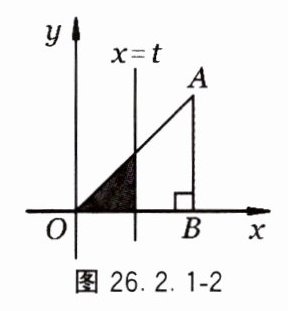 6. 如图26.2.1 - 2,在$Rt\triangle AOB$中,$AB\perp OB$,且$AB = OB = 3$,若直线$x = t$截此三角形所得阴影部分的面积为$S$,则$S$与$t$之间的函数关系的大致图象是图26.2.1 - 3中的( ).