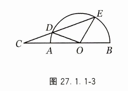 4. 如图27.1.1 - 3,以AB为直径的半圆O上有D、E两点,ED的延长线与BA的延长线交于点C,且有DC = OE. 若∠C = 20°,则∠EOB的大小为____.