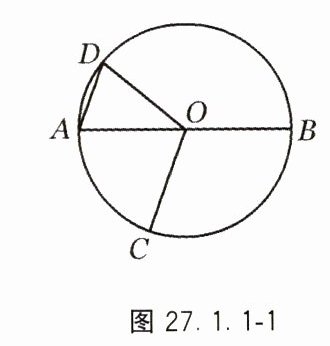 2. 如图27.1.1 - 1,AB是⊙O的直径,点C、D在⊙O上,且在AB的异侧,连结AD、OD、OC. 若∠AOC = 70°,且AD//OC,则∠AOD的大小为( ).