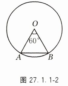 3. 如图27.1.1 - 2,若⊙O的半径长为5,∠AOB = 60°,则弦AB的长为____.