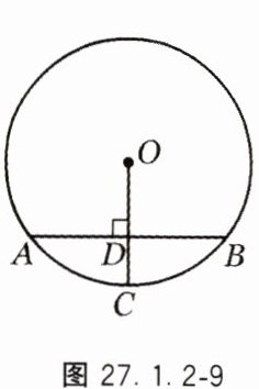 2. 如图27.1.2-9,AB是⊙O的弦,OC是⊙O的半径,OC⊥AB于点D. 若AB=8,