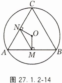 7. 如图27.1.2-14,在等边三角形ABC中,AB、AC都是圆O的
