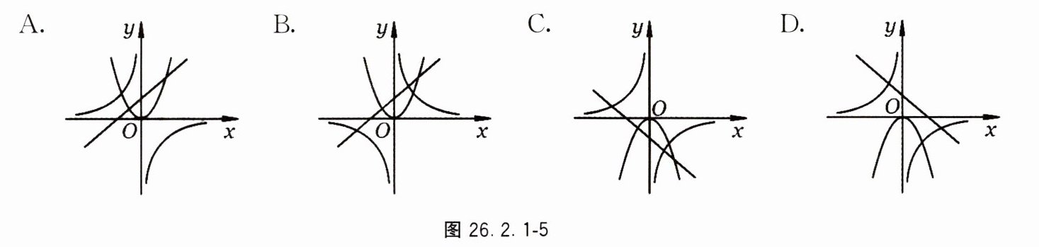 8. 函数$y = k(x - k)$、$y = kx^{2}$与$y=\frac{k}{x}$($k\neq0$)在同一平面直角坐标系上的大致图象是图26.2.1 - 5中的( ).