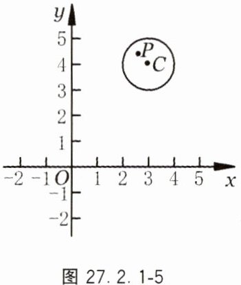 10. 如图 27.2.1 - 5,⊙$C$的半径为 $1$,圆心坐标为 $(3,\ 4)$,点 $P(m,\ n)$ 是⊙$C$ 内或⊙$C$ 上的一个动点,求 $m^{2}+n^{2}$的最小值和最大值.