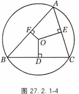9. 如图 27.2.1 - 4,若在$\triangle ABC$中$\angle A$、$\angle B$、$\angle C$ 所对的三边分别记为 $a$、$b$、$c$,$O$ 是$\triangle ABC$ 的外心,$OD\perp BC$,$OE\perp AC$,$OF\perp AB$,则 $OD:OE:OF$ 等于( ).
