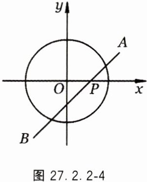 9. 如图 27.2.2 - 4,在平面直角坐标系中,已知⊙$O$的半径为 $2$,动直线 $AB$ 与 $x$ 轴交于点 $P(x,\ 0)$,直线 $AB$ 与 $x$ 轴正方向的夹角为 $45^{\circ}$. 若直线 $AB$ 与⊙$O$ 有公共点,则 $x$ 的取值范围是________________.
