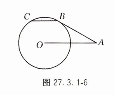 8. 如图 27.3.1 - 6,已知 $AB$ 切$\odot O$于点 $B$,$OA = 2$,$\angle OAB = 30^{\circ}$,弦 $BC// OA$,试求$\overset{\frown}{BC}$的长.
