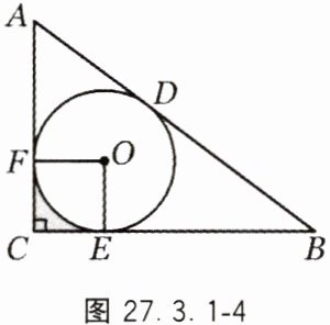 6. 如图 27.3.1 - 4,若$\triangle ABC$的内切圆$\odot O$与 $AB$、$BC$、$AC$分别相切于点 $D$、$E$、$F$,连结 $OE$,$OF$,$\angle C = 90^{\circ}$,$AC = 6$,$BC = 8$,则图中阴影部分的面积为 ________.